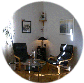 Ein großer Praxisraum, der mit Liebe zum Detail eingerichtet ist, schafft die äußere Atmosphäre für eine vertrauensvolle Behandlung.
